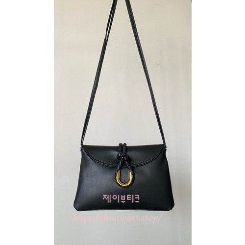 더블 플랩과 메탈 성분 및 위빙 코드로 구성된 잠금장치를 갖춘 부드러운 송아지가죽 소재의 스몰 크로스바디 백